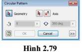 - Trên thanh Pattern, nhấp vào biểu tượng Circular Pattern. Hộp thoại Circular Pattern sẽ xuất hiện như trong Hình