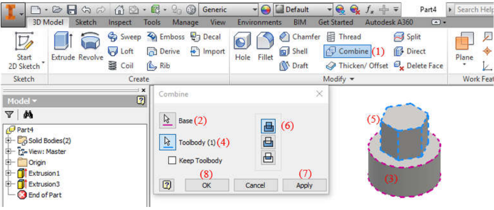 Để thực hiện phép toán trừ giữa hai hoặc nhiều đối tượng trong Autodesk Inventor, bạn cần tuân theo các bước sau: