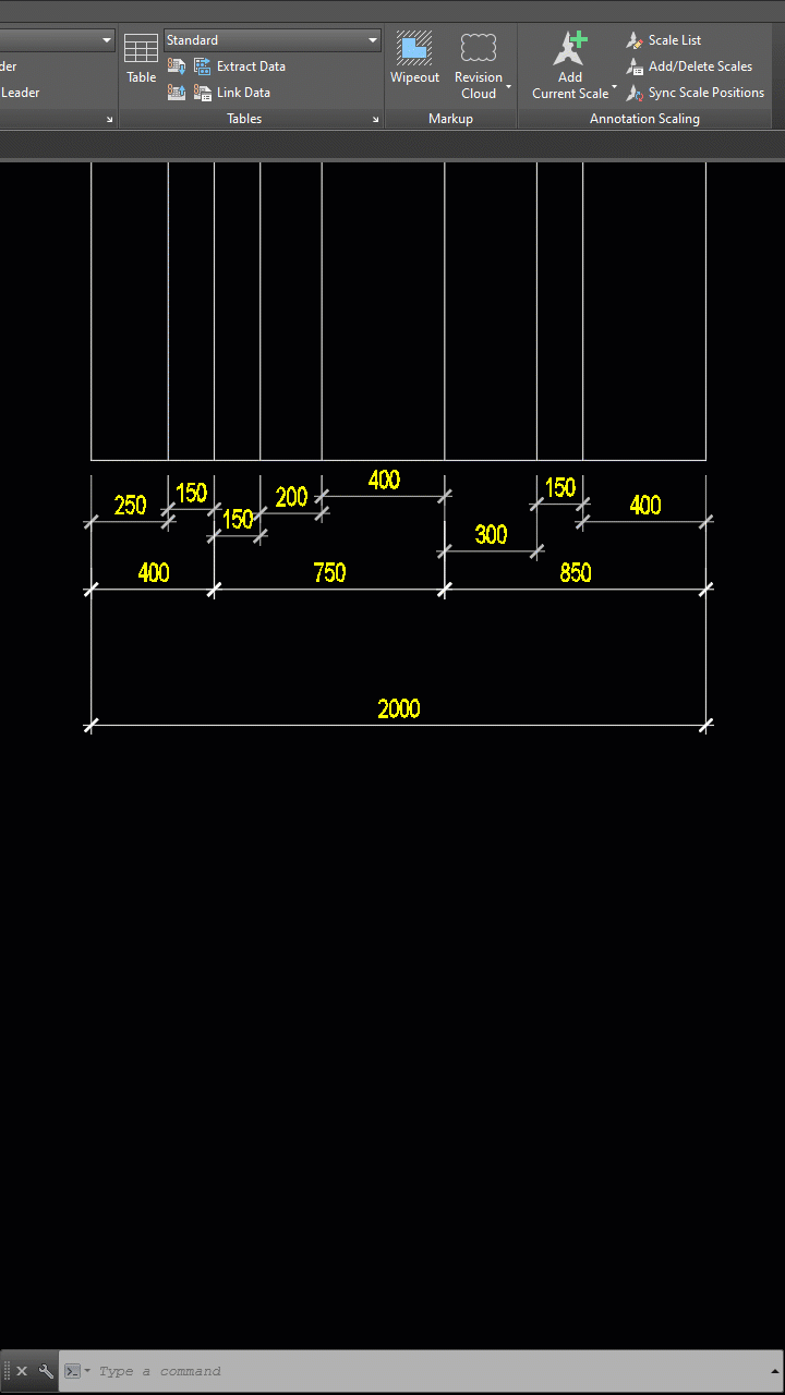 - Nhấn Space hoặc Enter để hoàn tất lệnh. AutoCAD sẽ thực hiện căn chỉnh hoặc giãn dim theo thiết lập bạn đã nhập.