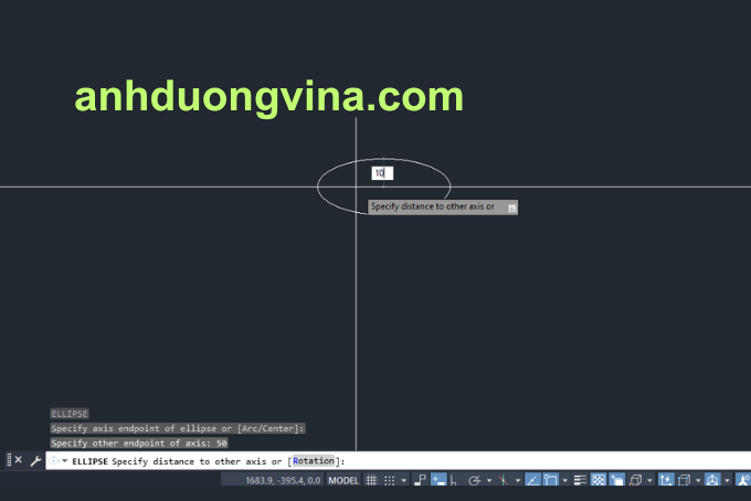 Bước 4: Nhập giá trị bán kính cho trục còn lại và nhấn Enter để hoàn tất lệnh. Kết quả là một Ellipse theo đúng kích thước bạn đã thiết lập.