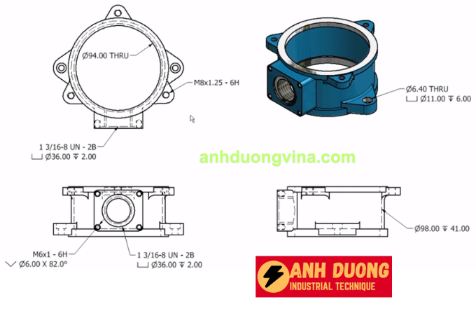Trong thiết kế cơ khí, việc tạo và ghi kích thước cho các lỗ khoan, lỗ ren hay các lỗ tiêu chuẩn khác là một phần quan trọng để đảm bảo các chi tiết được sản xuất chính xác. Autodesk Inventor cung cấp các công cụ mạnh mẽ như Lệnh Hole and Thread để thực hiện nhiệm vụ này một cách dễ dàng và hiệu quả. Bài viết này, được biên soạn bởi đội ngũ kỹ thuật của anhduongvina.com, sẽ hướng dẫn bạn cách sử dụng lệnh Hole and Thread trong Autodesk Inventor, từ đó nâng cao chất lượng bản vẽ kỹ thuật của bạn.