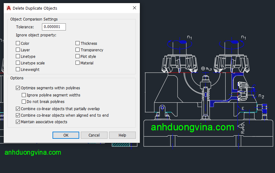 - Tùy chỉnh thuộc tính trong hộp thoại Delete Duplicate Objects: Tận dụng các tùy chọn như Combine co-linear và Ignore object properties để tối ưu hóa quá trình xóa mà không làm ảnh hưởng đến các đối tượng cần giữ lại.