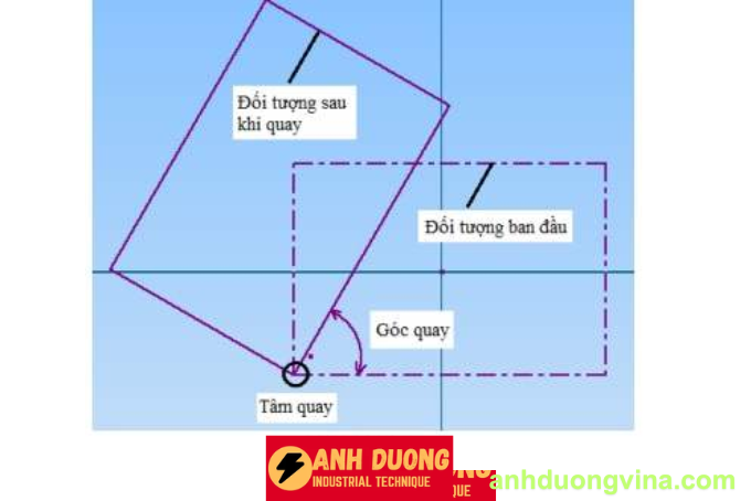 - Sử dụng nút lệnh chọn tâm quay. Tâm quay là điểm cố định mà từ đó các đối tượng sẽ quay quanh.