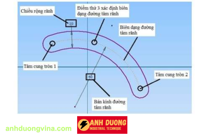 - Bước 4: Chọn điểm thứ ba để xác định biên dạng đường tâm rãnh hoặc nhập giá trị bán kính đường tâm rãnh rồi nhấn Enter.