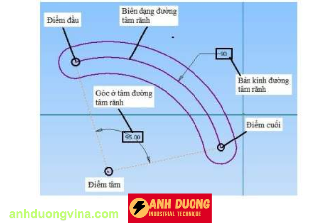 - Bước 4: Chọn điểm cuối của đường tâm rãnh hoặc nhập giá trị góc ở tâm của biên dạng đường tâm rãnh rồi nhấn Enter.