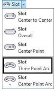 Kiểu vẽ Three Point Arc cho phép người dùng vẽ rãnh tuyến tính khi biết biên dạng đường tâm của rãnh và chiều rộng rãnh. Biên dạng đường tâm rãnh được xác định bởi ba điểm: hai điểm là hai tâm cung tròn của rãnh và một điểm nằm trên đường tâm rãnh. Công cụ này giúp tạo ra các rãnh với hình dạng chính xác và mượt mà.