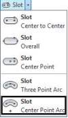 Kiểu vẽ Center Point Arc cho phép người dùng vẽ rãnh tuyến tính khi biết biên dạng đường tâm rãnh và chiều rộng rãnh. Biên dạng đường tâm rãnh được xác định bởi ba điểm: tâm, điểm đầu và điểm cuối của đường tâm rãnh. Công cụ này giúp tạo ra các rãnh với hình dạng chính xác và mượt mà, phù hợp với yêu cầu thiết kế phức tạp.