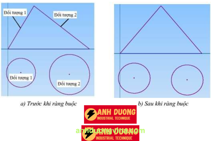- Sử dụng nút lệnh chọn để chọn đối tượng thứ hai cần được ràng buộc bằng nhau.