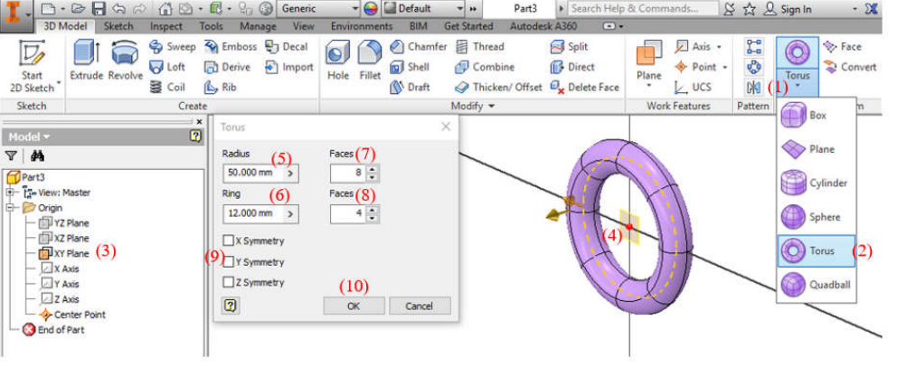Lệnh Tạo Khối Xuyến (Torus) và Khối Hộp Tròn (Quadball) trong Autodesk Inventor