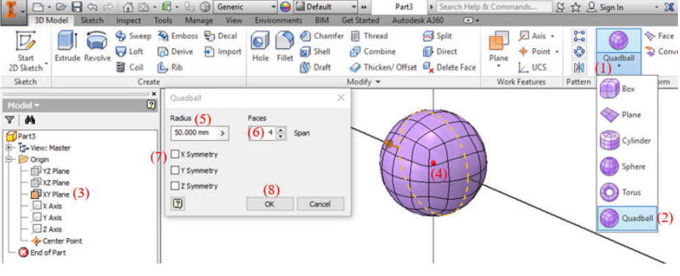 - Trên thanh công cụ 3D Model, chọn biểu tượng Quadball hoặc truy cập từ menu Create.