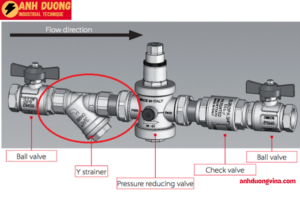- Nước hoặc chất lỏng đi qua thân lọc chữ Y.