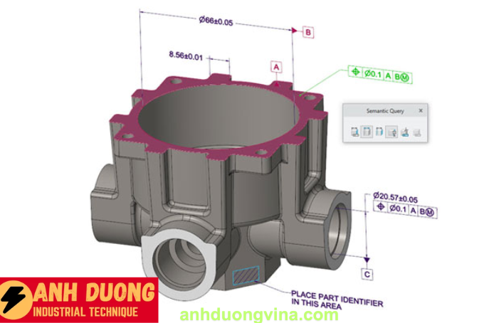 Nói cách khác, Model-Based Definition (MBD) giúp chuyển đổi mô hình 3D thành tài liệu kỹ thuật toàn diện, nơi mọi thông tin quan trọng về sản phẩm đều được thể hiện trực tiếp trên mô hình, từ kích thước đến dung sai và các yêu cầu kỹ thuật khác.