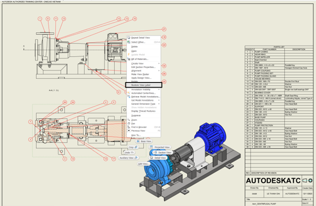 Khi sử dụng tính năng cắt Section hoặc trích xuất Detail View trong môi trường Drawing, đôi lúc trong quá trình bố trí bản vẽ, các nhãn của mặt cắt trên có thể bị di chuyển đến những vị trí khác. Trên Inventor 2024.2, hãng đã cung cấp một tính năng mới là Drawing View Labels, giúp người dùng dễ dàng đặt lại các nhãn của khung bản vẽ về vị trí mặc định, giải quyết vấn đề về sự xáo trộn không mong muốn của các nhãn.