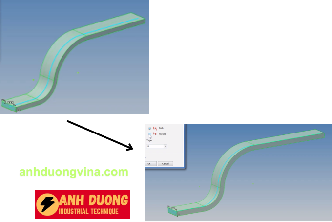 - Parallel: Chọn tùy chọn này để biên dạng giữ nguyên hướng chạy theo đường dẫn tại mỗi vị trí, các biên dạng tại mỗi vị trí đều song song với nhau.