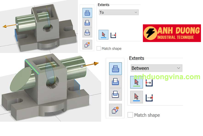 - Between: Extrude nằm giữa hai mặt phẳng được chỉ định.