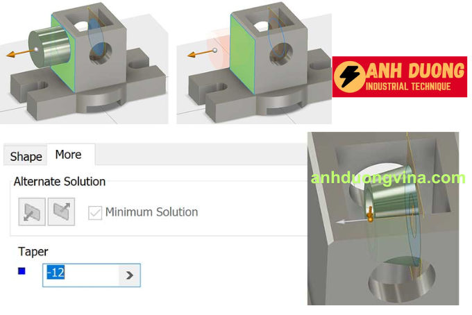- Taper: Tạo góc nghiêng cho Extrude, giúp tạo các chi tiết có độ nghiêng cần thiết trong thiết kế.