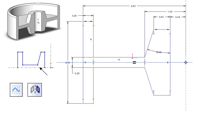 - Không Để Phác Thảo Cắt Qua Đường Tâm: Phác thảo sử dụng cho Revolved Feature không nên cắt ngang qua đường tâm, vì điều này có thể gây ra lỗi trong quá trình tạo đặc tính.