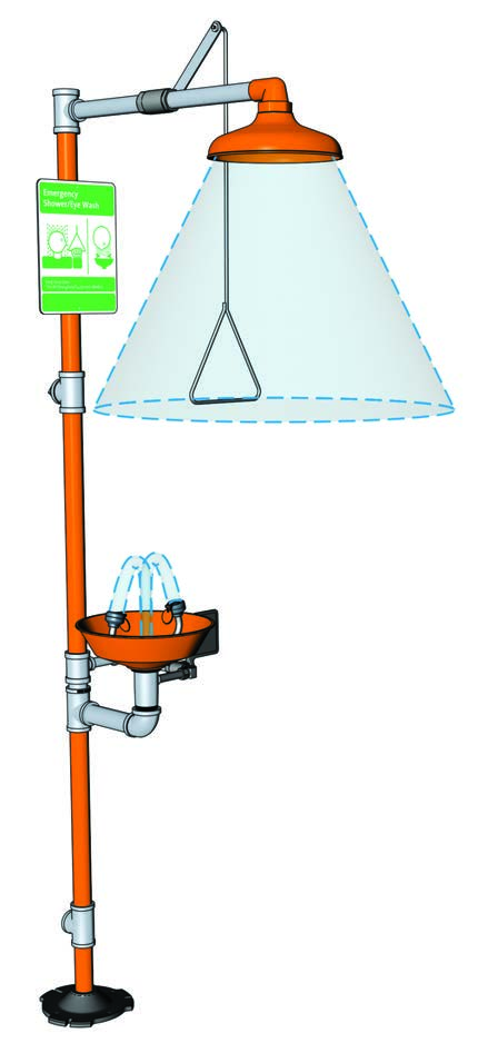 Bồn rửa mắt và tắm khẩn cấp được thiết kế ra sử dụng trong trường hợp loại bỏ các hóa chất có hại khỏi cơ thể con người như ( Bụi, Hóa Chất ) , Đây là bước đầu tiên khi bạn bị hóa chất tác động lên cơ thể, cho nên khu vực sử dụng hóa chất nào cũng phải lắp đặt 1 cây ở gần đó, để khi có hóa chất văng bắn vào mắt hoặc cơ thể thì chúng ta nhanh chóng chạy đến bồn rửa mắt và tấm khẩn cấp để tiến rửa trôi hóa chất ngay lập tức, tránh gây hậu quả nghiêm trọng sau này