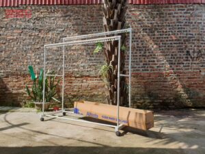 Giàn phơi quần áo di động với thiết kế khung nhôm gồm 2 tầng phơi thông minh đa năng thiết kế đạt hiệu quả phơi tối đa, giàn phơi thông minh dễ dàng tháo lắp, di chuyển với 4 bánh xe cứng cáp. Hiện tại trên thị trường có rất nhiều loại giàn phơi quần áo như: giàn phơi inox 304; giàn phơi ngoài trời; giàn phơi mini,…nhưng với chất liệu nhôm thì đây là lần đầu tiên xuất hiện tại Việt Nam.