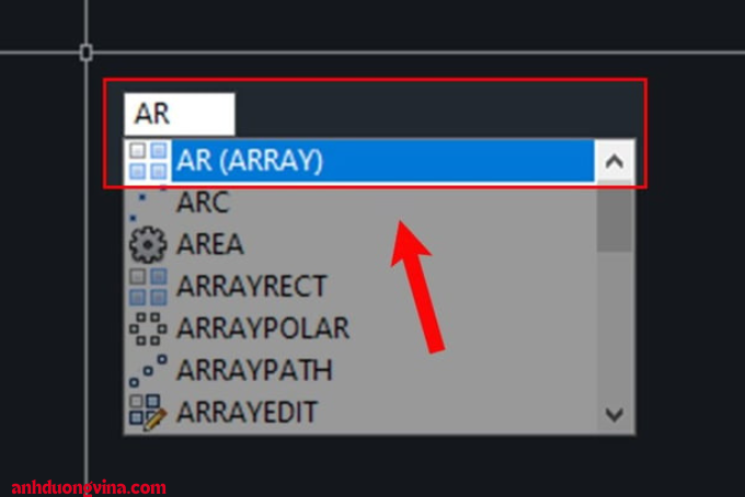 Bước 2: Nhập lệnh ARRAY