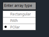 - Hệ thống sẽ yêu cầu bạn chọn loại ARRAY. Bạn có thể chọn Rectangular, Polar, hoặc Path bằng cách sử dụng các tùy chọn xuất hiện trên màn hình.