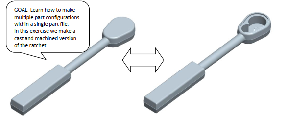 - Tạo hai phiên bản của bộ phận cào bánh xe: một phiên bản đúc (cast) và một phiên bản gia công (machined).