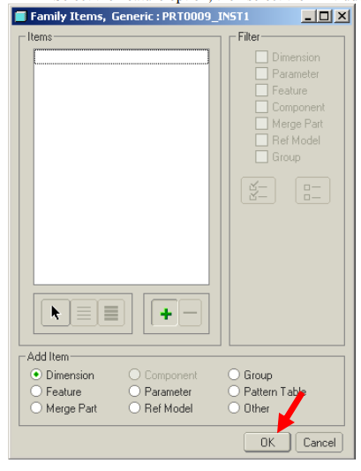 - Nhấn “OK” để thêm các đặc tính này vào Family Tables.