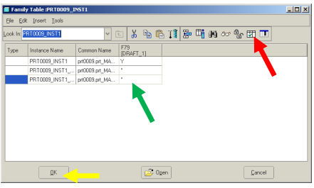 - Trong cột Family Tables, nhập “N” cho các đặc tính mà bạn muốn ẩn đi và “Y” cho các đặc tính mà bạn muốn hiển thị.