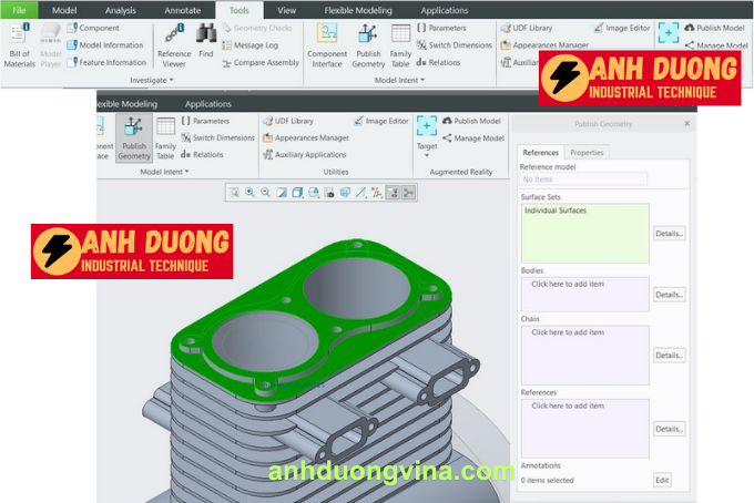 Trong quá trình thiết kế, việc sử dụng lệnh Copy Geometry giúp tái sử dụng các hình học từ các mô hình hiện có, hỗ trợ thiết kế ngược và phát triển các chi tiết mới với tính kế thừa cao. Bài viết dưới đây sẽ trình bày chi tiết cách sử dụng lệnh này trong Creo 8.0, cùng với các ứng dụng và bước thực hiện cụ thể.