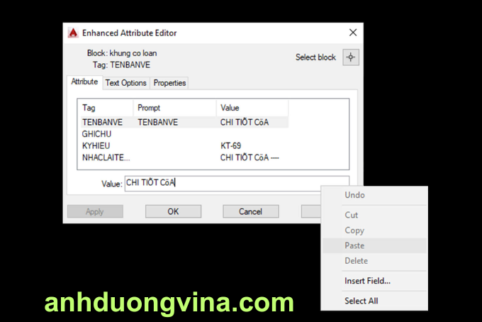 I. Tạo Biến Tự Động Cập Nhật Theo Biến ATT Trong AutoCAD