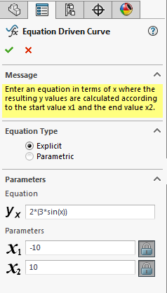 - Vào Tools > Sketch Entities > Equation Driven Curve để khởi động công cụ tạo Curve dựa trên phương trình.