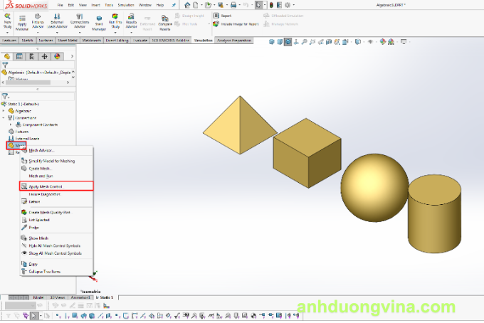 - Trong Design Tree, chọn Mesh và sau đó nhấp chuột phải, chọn Apply Mesh Control.