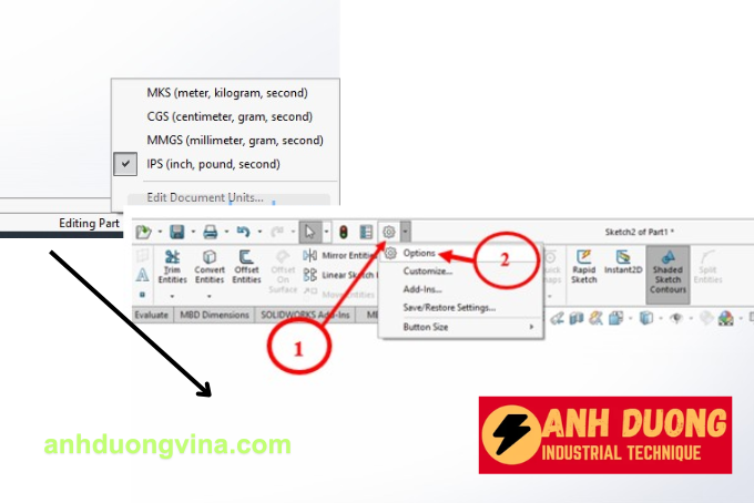 1. Các Cách Thay Đổi Hệ Đơn Vị Trong SOLIDWORKS