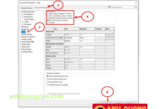 - Chọn hệ đơn vị bạn muốn sử dụng (ví dụ: MMGS để chuyển sang mm).