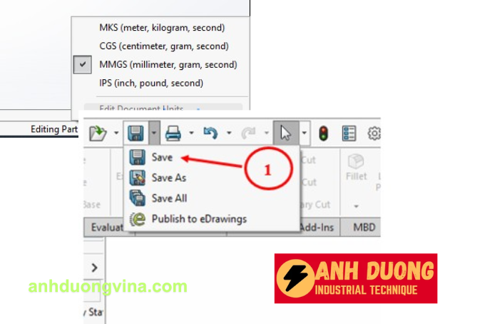 Bước 1: Thay đổi hệ đơn vị cho file Part