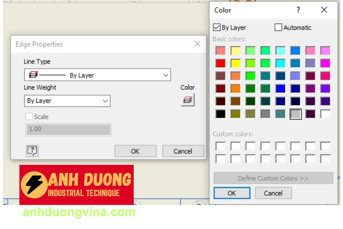 Lưu Ý: Việc thay đổi màu thủ công này cần được lặp lại cho từng chi tiết trong bản vẽ, điều này có thể mất thời gian nếu bản vẽ có nhiều chi tiết.