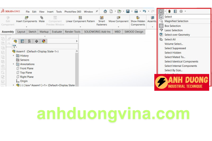 - Nhấp chuột phải vào màn hình đồ họa hoặc vùng hiển thị Assembly.