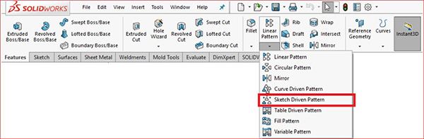 Bước 3: Chọn lệnh Sketch Driven Pattern