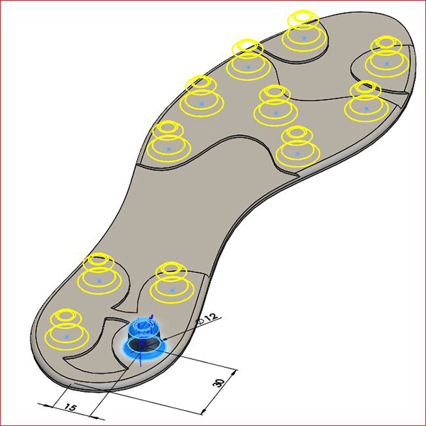 Để minh họa, chúng ta sẽ tạo đế giày bóng đá với các đinh tán được sao chép dựa trên các điểm tham chiếu trong Sketch.