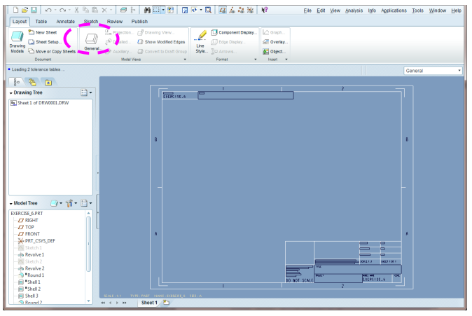 - Nhấp chuột phải (RMB) và giữ ở giữa bảng vẽ, hoặc chọn biểu tượng “General” trong tab “Layout” trên Ribbon.
