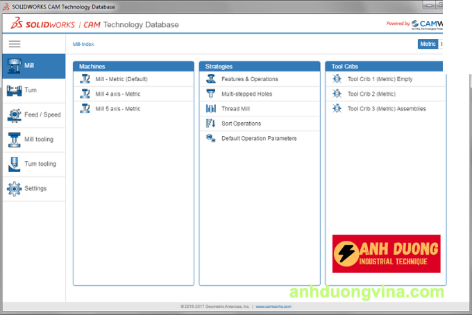 SOLIDWORKS CAM có một cơ sở dữ liệu công nghệ mạnh mẽ, cho phép người dùng lưu trữ các lựa chọn dao cụ, chiến lược gia công, tốc độ cắt và các thông số gia công khác. Những lựa chọn này sẽ được lưu lại trong cơ sở dữ liệu và tự động được sử dụng cho các chi tiết tương tự trong tương lai, giúp tiết kiệm thời gian và công sức khi gia công những sản phẩm tương tự sau này.
